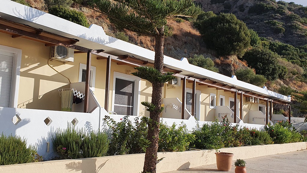 Die Unterkünfte bieten einen freien Blick auf das weite Rund der Bucht, deren kristallklares Wasser zum Baden einlädt